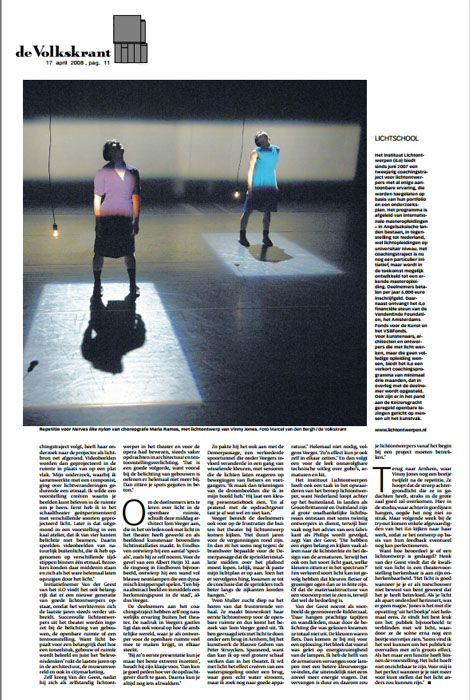 “As três bailarinas estão dispostas como um triângulo – uma à frente, duas atrás, de cada lado – e executam movimentos mecanizados, ao ritmo das palavras que proferem. Três troncos estáticos, como se tivessem criado raízes. Maria Ramos explica que tentou concentrar todo o movimento na região do tronco, o que é uma ideia “quase anti-coreográfica”: como é que elas dançam se estão paradas?” Kathleen Gomes